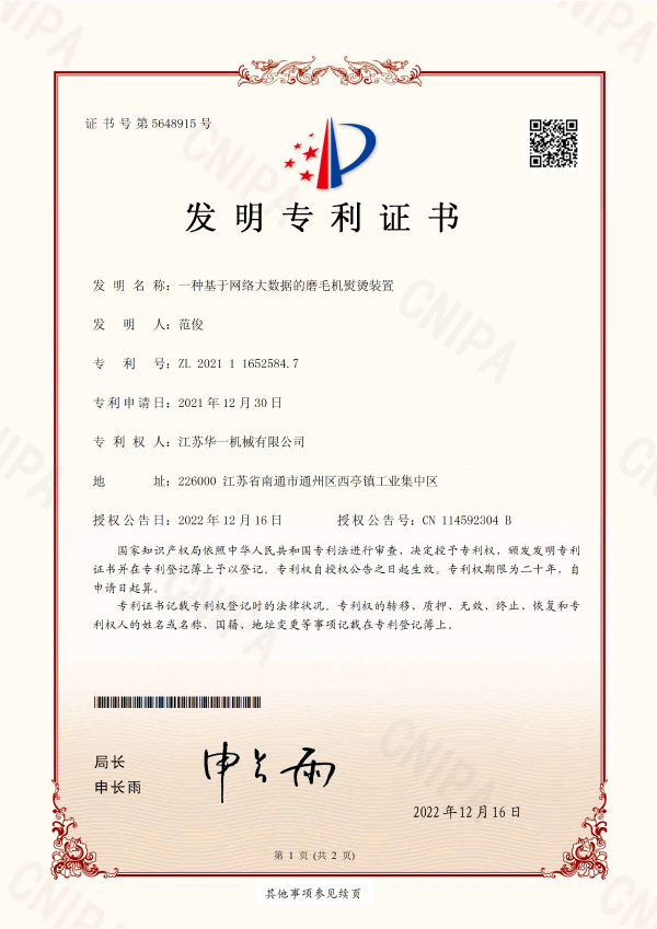 2019207829235 یک دستگاه سنگ زنی دو طرفه منسوجات با اثر حذف گرد و غبار