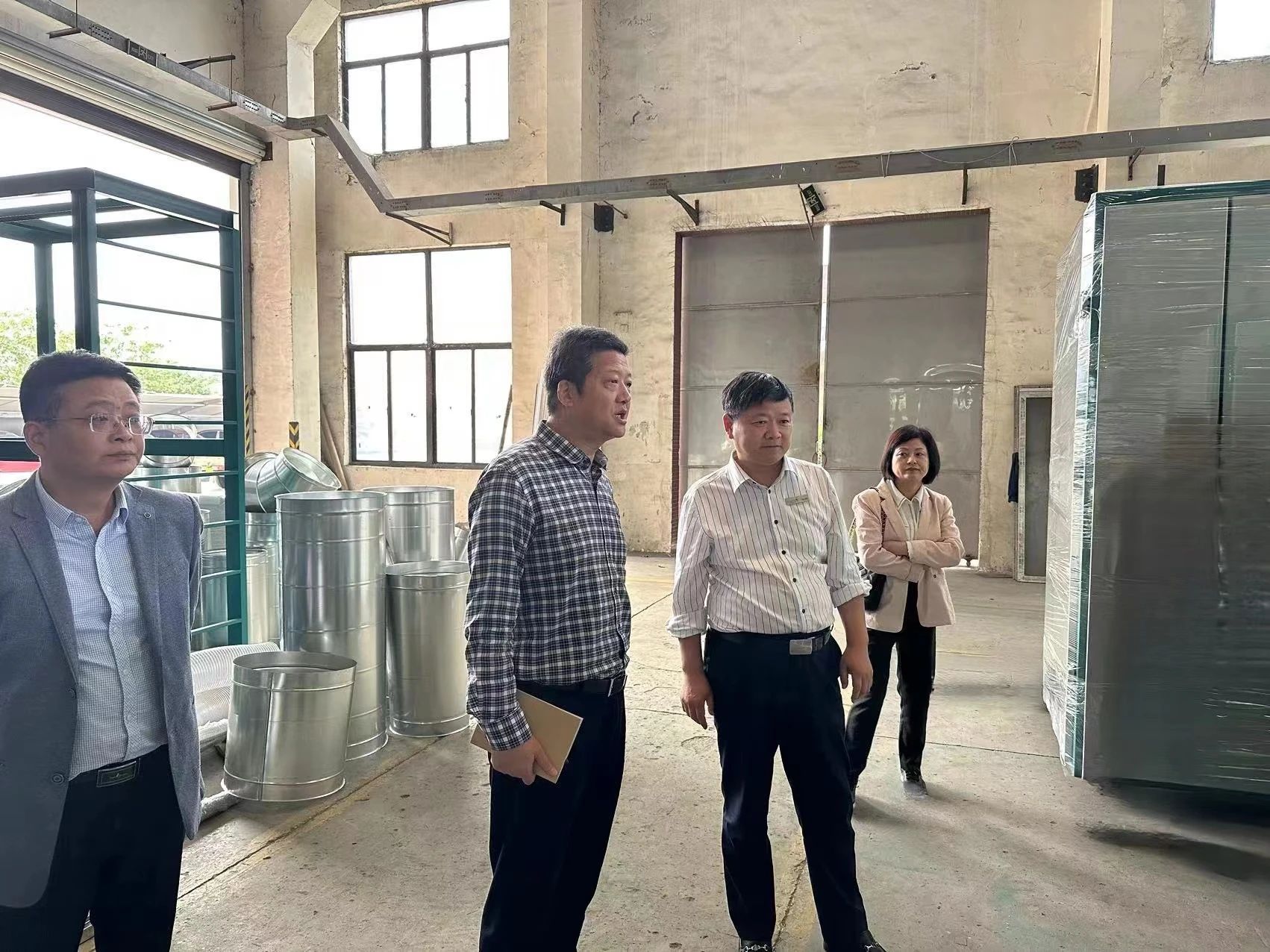 مدیر ژو و هیئت همراهش ابتدا از کارگاه تولید شرکت بازدید کردند و در آنجا تحت تأثیر محیط تولید روشن، تمیز و منظم قرار گرفتند. معرفی مدیر کل فن، درک عمیق تری از پیشرفت پررونق ماشین های جیر و دستگاه های نرم کننده هوا در سال های اخیر و همچنین کاربرد گسترده آنها در صنعت نساجی به هیئت ارائه داد.